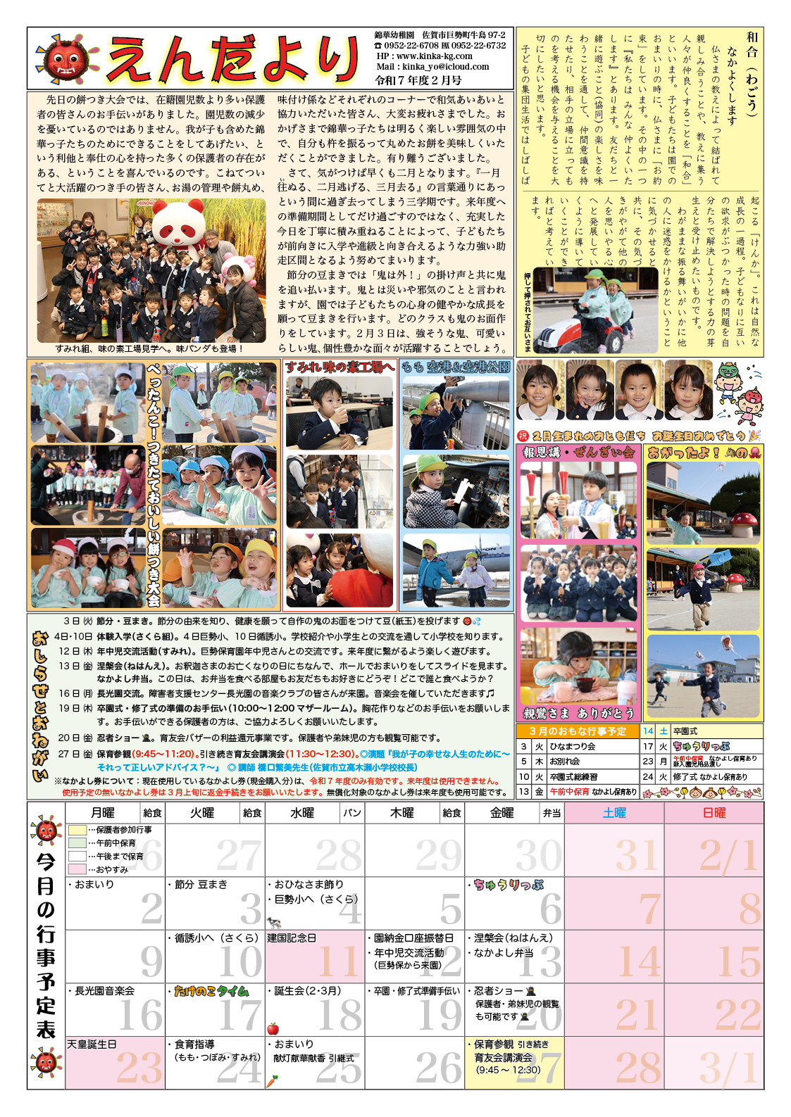 2月のえんだより 2026年2月2日 園だより Facebook で共有するにはクリックしてください (新しいウィンドウで開きます) Facebook クリックして X で共有 (新しいウィンドウで開きます) X クリックして友達にメールでリンクを送信 (新しいウィンドウで開きます) メールアドレス