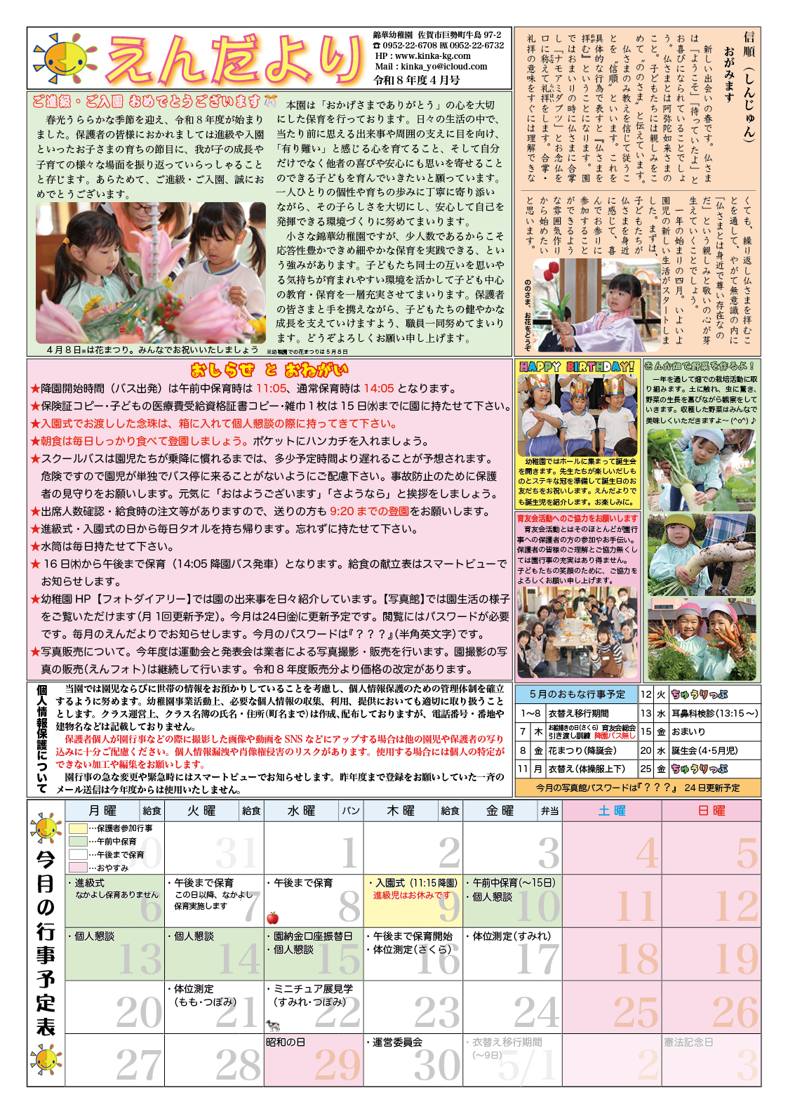 4月のえんだより 2026年4月23日 園だより Facebook で共有するにはクリックしてください (新しいウィンドウで開きます) Facebook クリックして X で共有 (新しいウィンドウで開きます) X クリックして友達にメールでリンクを送信 (新しいウィンドウで開きます) メールアドレス