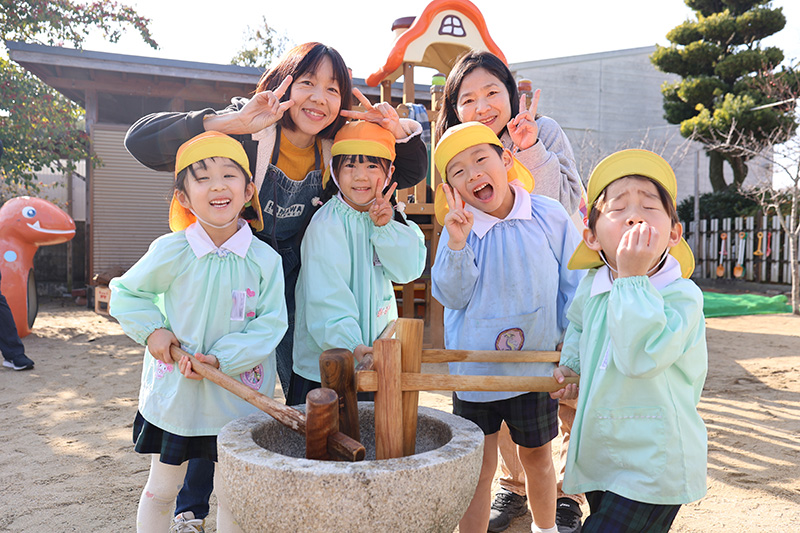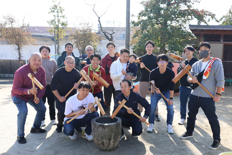 保護者の皆さん、餅つき大会のお手伝いは準備から後片付けまで大変お疲れさまでした。蒸し上がった餅米をこねてつくのは大変な力仕事だったと思います。途中で餅を返したり取り上げたりするのは熱かったことでしょう。蒸し器の釜や杵をつけるタライのお湯のこまやかな補充も有り難うございました。味付けコーナーでは優しく子どもたちに接していただきました。ホールでの土産用のお餅丸めも和気藹々と進めていただきました。保護者さんあっての餅つき大会であり園行事だと思います。有り難うございました!