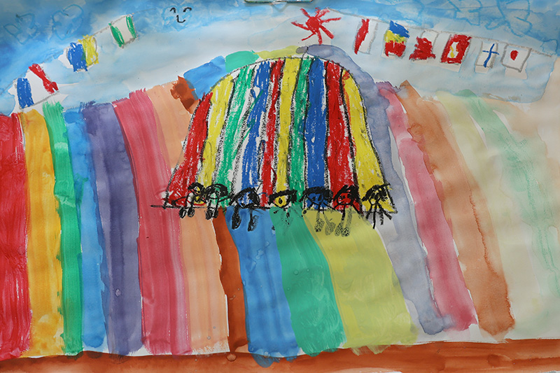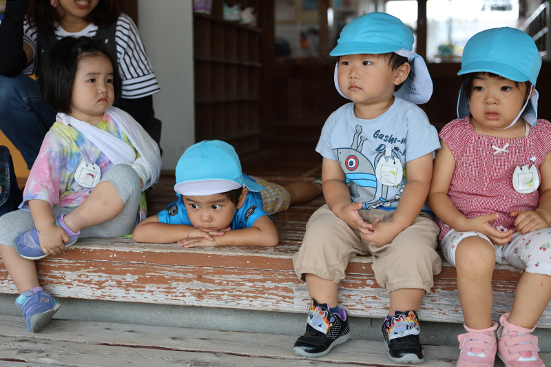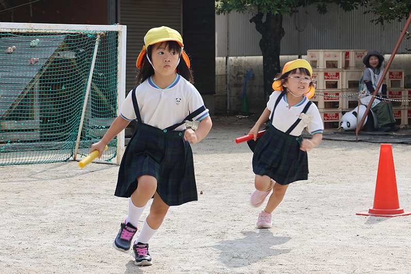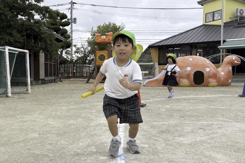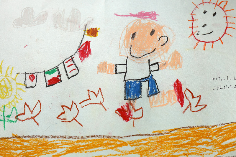 今朝はへんな天気でした。さくら組がリレーをしようと思ったら雨が降り出して、雨宿りをしてたら雨が止んで、よし、リレーやるぞ!と思ったらまた降り出して・・・の繰り返し。すみれ組もちょっとしか園庭で遊べませんでした。つぼみ組は廊下でスタンバっていたのに結局、外で遊べず渋々部屋に戻ることに(´∀`;)。ま、天気になったらまた存分に園庭で遊びましょう!٩(•̤̀ᵕ•̤́๑)。さくら組とすみれ組は運動会の経験画を描いています。