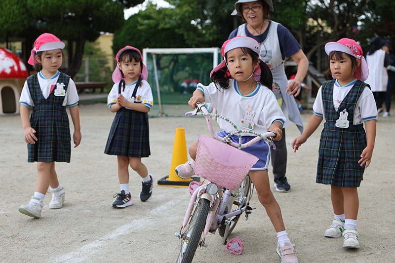 今日は未就園児親子のちゅうりっぷで『ようちえんたんけん』でした。つぼみ組ともも組に入って、園児と一緒に制作をしたり、作った紙皿のコマやドングリを転がして遊んだりして過ごしていただきました。そのあとは錦華幼稚園について園長から話をさせていただきました。今後も幼稚園の見学と説明は随時おこないます。希望される方は電話にてお申し込みください。
