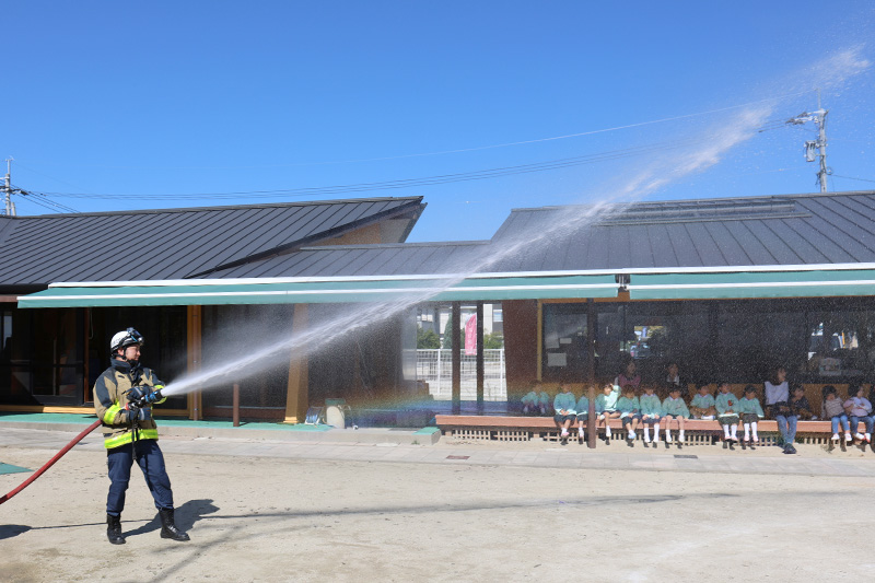 プシャーッ!迫力の放水実演