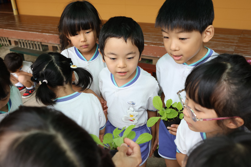今朝のこと。雨の中「畑のタネは喜んでいるかもね」と登園してくる親子の会話が聞こえてきました。物事には多面性や多様な価値があることを子どもに伝えるのは、大人のさりげない言葉かけが大切なんだなぁと改めて気づかされました。感性の瑞々しさという点では大人は子どもにかないませんが、感じたことを表現する語彙や言葉の紡ぎ方は大人の方が豊かなはず。「雨かぁ、ちっ」と思っていた園長は反省しきり。