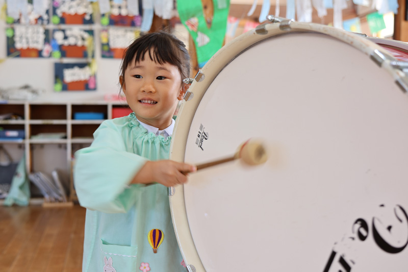 もも組、音楽リズム発表会の合奏で使用する楽器に触れてみました。自由に楽しそうに音を出していましたよ♪好きな楽器はどれだったかな?