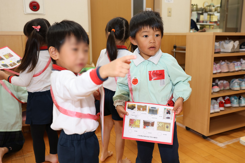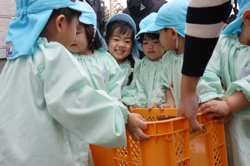 すみれ組、巨勢保育園の年中児さんとの交流に出かけてきました。ワクワク気分で園バスに乗って、ものの5分ほどで到着してしまうほど近くにある巨勢保育園。それぞれに欠席などもあって、錦華19名、巨勢保育園18名と、ほぼ同人数での交流活動となりました。ホールに集まって朝の挨拶の後、6つの果物グループに分かれて、まずはスタンプ(シール)ラリー形式で園内の探検。勝手知ったる巨勢保育園のお友だちに手を引かれて次々にクリアしていきました。それから、ホールで大きな輪になってフルーツバスケット٩( ᐛ )و。大勢でルールのある遊びに挑戦することができた交流活動でした。学期に一度の交流活動。次回は3学期に錦華幼稚園で行います。
