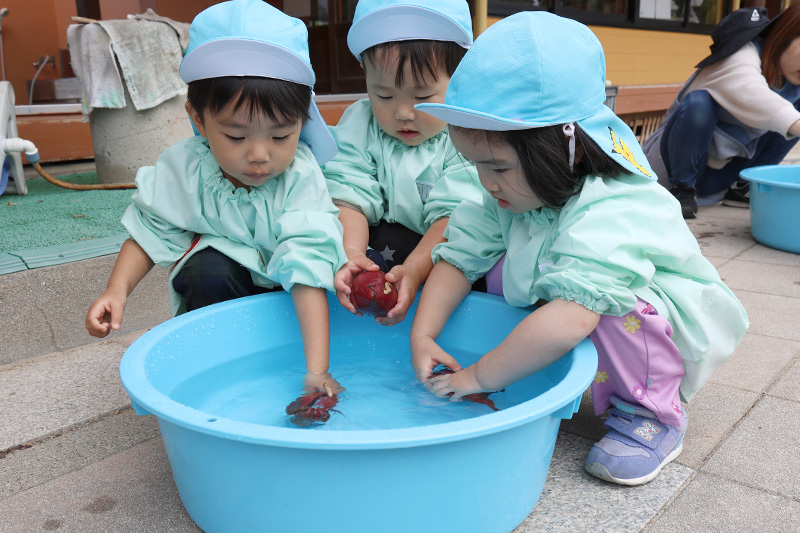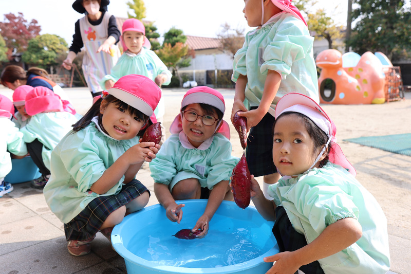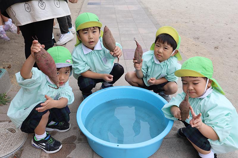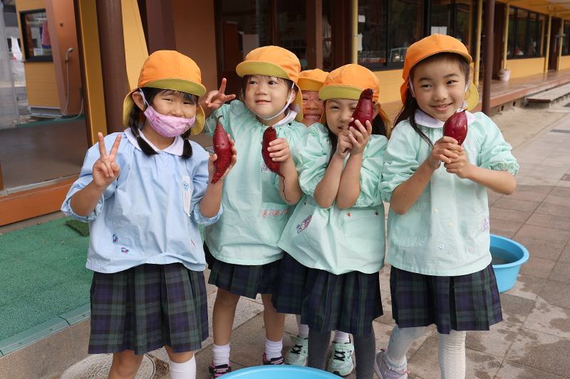 明日は、さつまいもパーティを予定しています。クラスごとにお芋洗いのお手伝いをしてもらいました。猛暑の影響で今年は収量が例年よりも少なかったのですが、みんなで秋の味覚を味わいたいと思いますლ(´ڡ`ლ) 。衣装作りお手伝い(3回目)に来ていただいた保護者さんにも秋の味覚のお裾分けをしますよ〜!