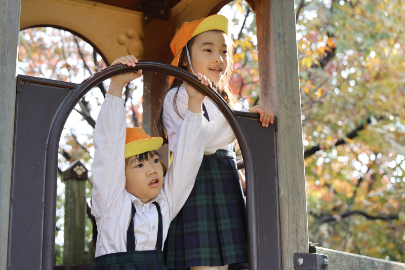 園庭の木々も色づきます