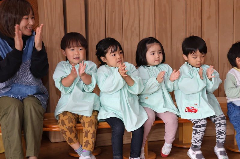 今日からすみれ組やもも組もホールで合奏合唱の練習を始めました。それぞれの保育室での練習と勝手が違ったのか、いつもはバッチリなのについついリズムが速くなったり、ちょっぴり緊張気味だったり・・・。きっとこれから少しずつ慣れていくことでしょう٩(•̤̀ᵕ•̤́๑)。