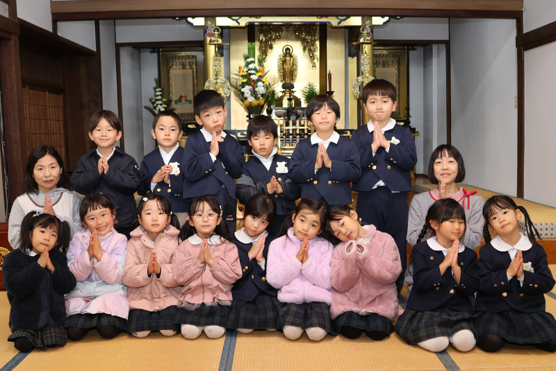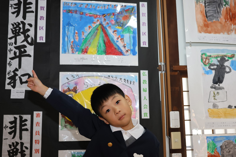 さくら組、県庁西側にある本願寺佐賀教堂に出かけてきました。浄土真宗本願寺派の寺院に関係する園児や児童による絵画や書道の作品が展示されています。運動会のバラバルーンを描いたさくら組のお友だちが映えある『佐賀教区賞』をいただいたことを記念してみんなで作品展を見に出かけたのでした。教堂の中庭のきれいな紅葉を見たり、普段は見ることのできない二階に上がらせていただいたりして教堂探検もさせてもらいました。