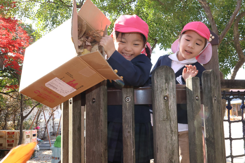 こちらは箱に落ち葉を詰めて・・・