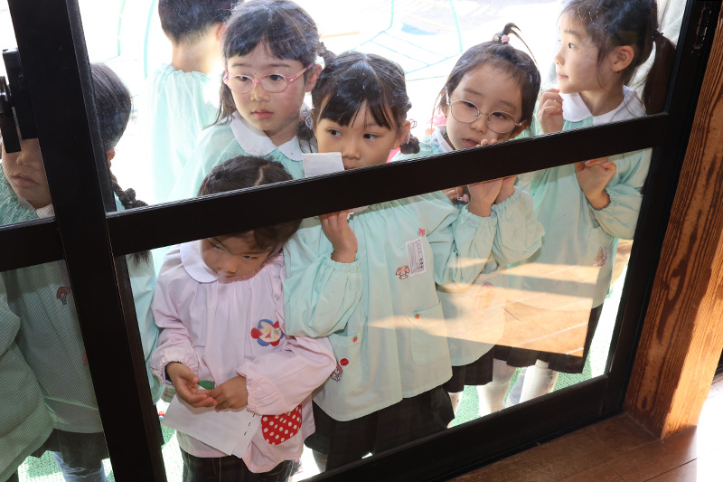 明日は発表会の総練習です。ホールで各クラスの合奏合唱とつぼみ組の遊戯をします。代わりばんこにお客さんになって、互いに応援し合います。見ること、見られることにも慣れていくことでしょう。