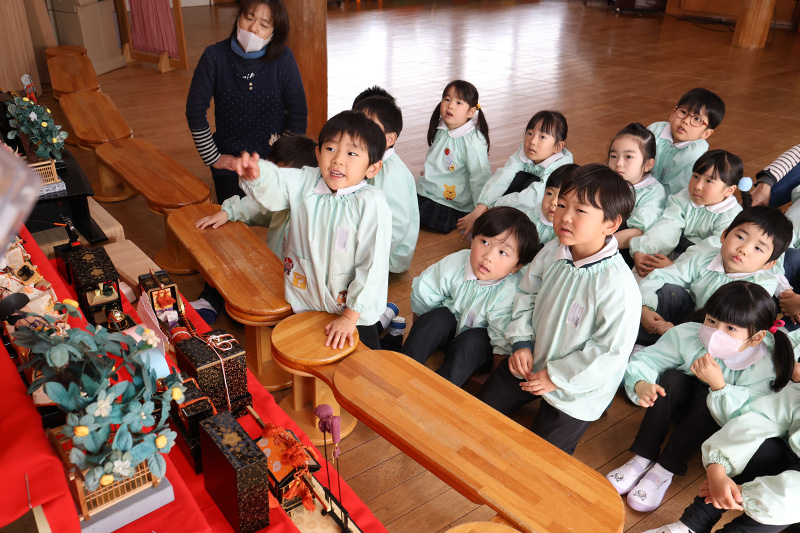 すみれ組、制作前に雛飾り見学