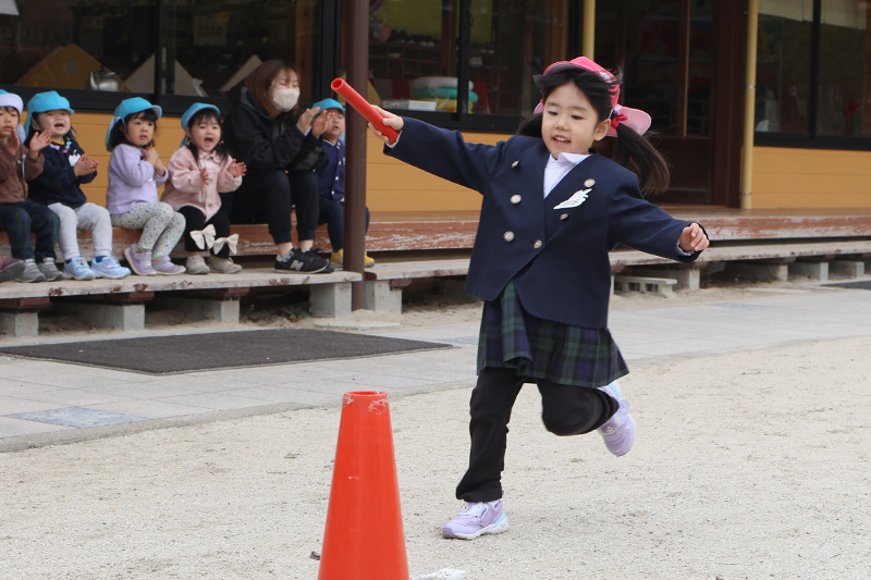 リレー大好き錦華っ子です。運動会のさくら組のかっこよさに憧れて、今では外遊びの際にどこかのクラスがリレーをしています。そんなこともあって明日の今年度最後のたけのこタイムでは、感謝のメダルを贈り合った後、たけのこグループ対抗のリレー大会をする予定です٩(•̤̀ᵕ•̤́๑)。果たしてどんな勝負が繰り広げられるのでしょうか!(*´Д`)’`ァ’`ァ