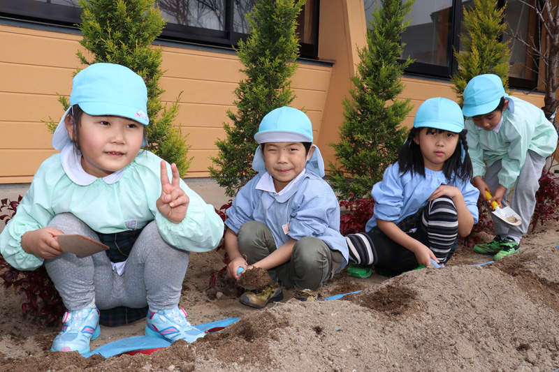 幼稚園玄関前に植樹(植栽の植え替え)をしています。卒園を前にしたさくら組さんには土をかけるお手伝いをしてもらいました。マザールーム前はゴールドクレストとオタフクナンテン。駐車スペース側に一部ボックスウッドを入れ替えています。今回の植樹は佐賀市緑化推進課の保育園幼稚園緑化事業により実現したものです。有り難いことです。そして作業をしていただいた春華園さん、大変お疲れさまでした。有り難うございました。