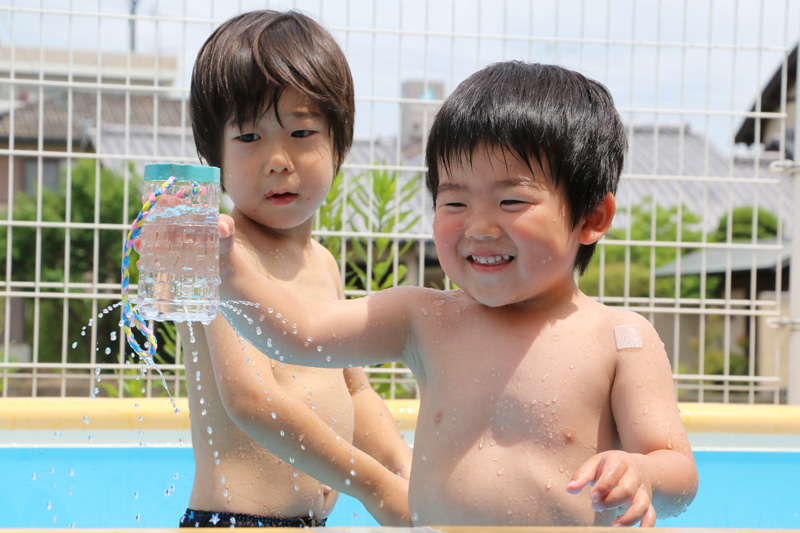 今日も全クラスでプール遊びをしています。ますます賑やかなプールの時間です(๑′ᴗ‵๑)。