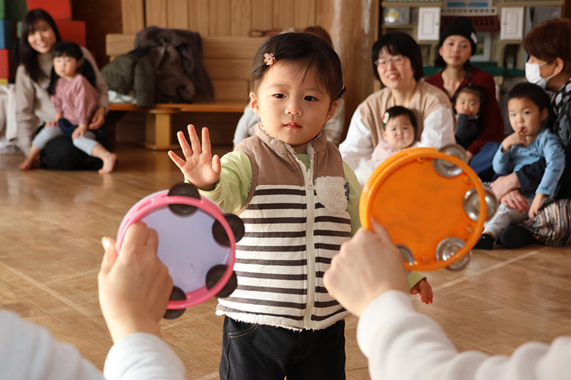 新しい年を迎え、今年初のちゅうりっぷ。つい最近までちゅうりっぷに参加していたつぼみ組さんが、ちゅうりっぷの先輩としてダンスに参加してくれました。わらべうたは、寒い日に食べたくなる“お・で・ん”の手遊びで、“おでんちゃん🍢”をしました。大根・しらたき・もち巾着など手や顔で表現して思わず笑いが‥‥楽しんでいましたね🤗
