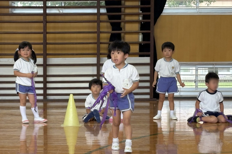 9月26日、もも組が佐賀県立ろう学校幼稚部との交流保育に出かけてきました。ろう学校へのお出かけは初めてのもも組。朝の会では、みんなちょっぴり緊張気味な表情で幼稚部の先生の声掛けにも『無』・・・でしたが(´∀`;)、エビカニクスのダンスから徐々に調子が出てきたもも組さん。体育館でのしっぽとりゲームやかけっこでは楽しく体を動かして遊ぶことができました٩( ᐛ )و