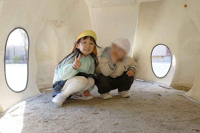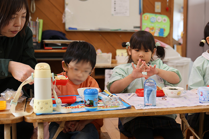 たっぷり遊んでお腹が空いたら、幼稚部のお友だちもそれぞれにさくら組とすみれ組に入って一緒に給食を食べてもらいました。楽しい時間はあっという間。幼稚部のお友だちが帰る時には、錦華っ子全員でゲートの前にトンネルを作ってくぐってもらってさようならをしました。クルマが見えなくなるまで名残惜しそうに手を振っていた錦華っ子たちでした。来年度もろう学校幼稚部さんとの交流保育を行う予定です。