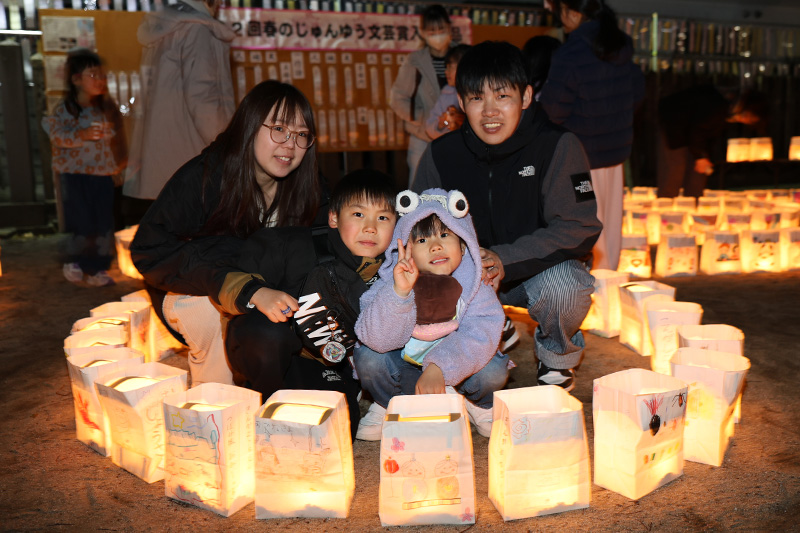 灯りに映える錦華っ子の可愛い灯明