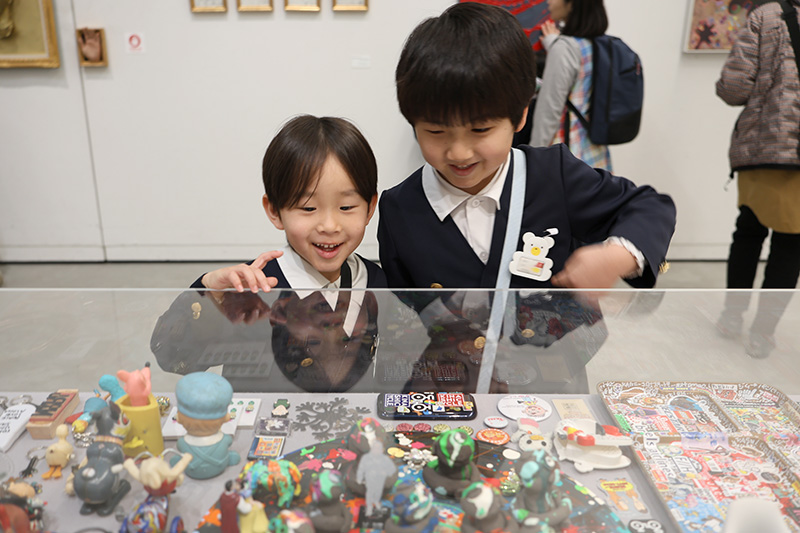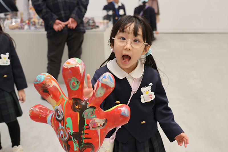 さくら組、佐賀県立美術館で開催中の『木梨憲武展−Touch』に出かけてきました。平日にも関わらずたくさんのお客さんがいらっしゃいました。さくら組さんたちも木梨さんの独特な世界観の作品たちに目を輝かせていました。〝Touch〟展とはいえ、当然TouchがNGな作品もあります。興味を惹かれた作品に触れんばかりに近づくさくら組さんにハラハラドキドキさせられた3名の引率でした(´∀`;)。Touch がOKな作品のコーナーでは存分に触って感触や立体感などを感じていたようでした。きっと今日の体験がこれからのプロジェクト活動に役立つことでしょう!