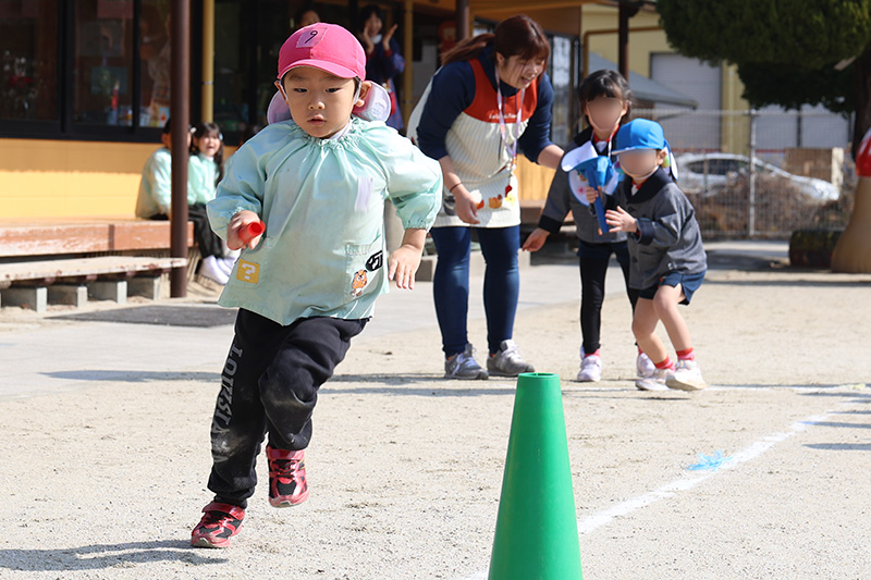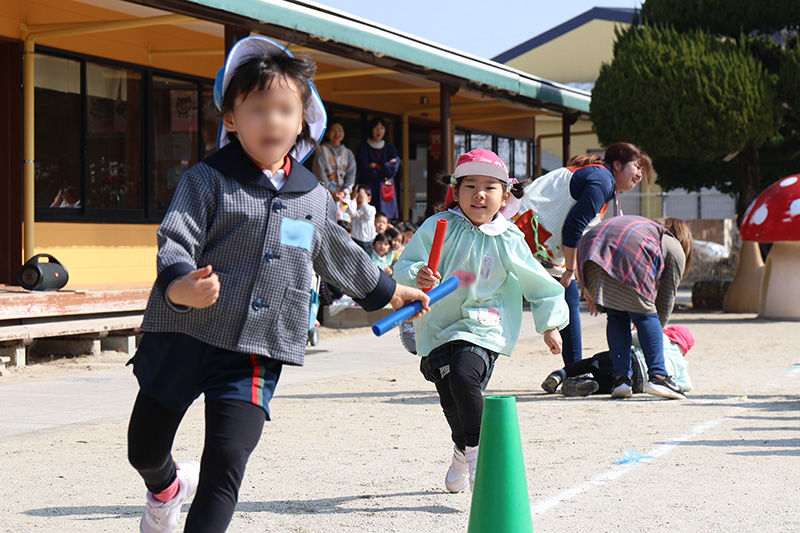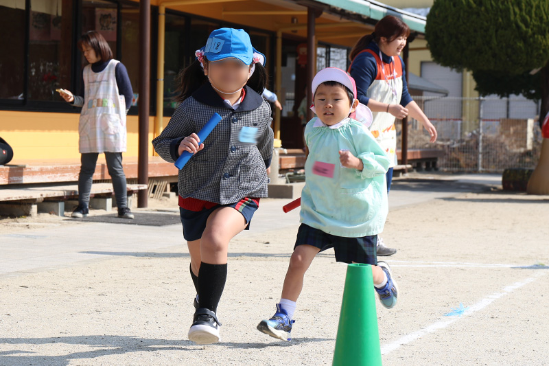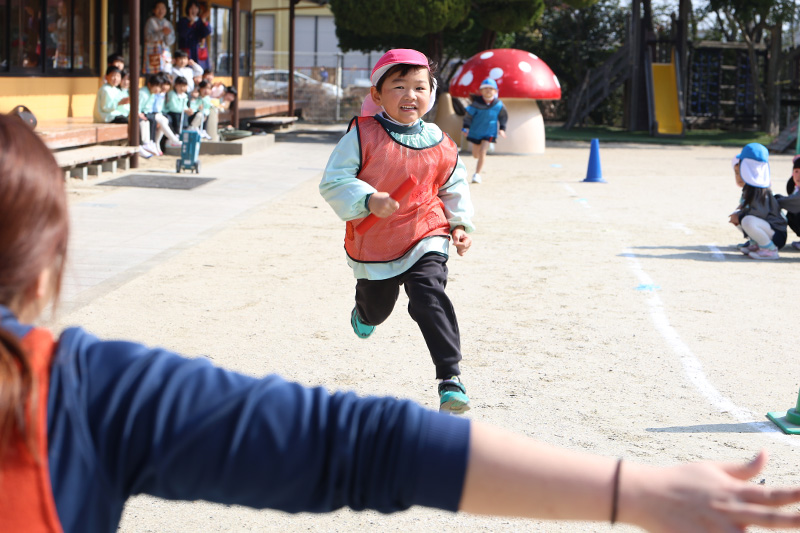 今日は、すみれ組が巨勢保育園年中児さんとの今年度3回目の交流活動を行いました。錦華のバスに乗ってきてくれた巨勢保育園の年中児(もも組)さんです。まずはホールですみれ組さんと一緒になってひと遊び٩( ᐛ )و。交流の回を重ねるごとに、対面時の緊張の度合いも低くなっているようです。全員でまぁるくなって〝昆虫太極拳〟を踊って身体が暖まったら、本日のメインイベント!?園対抗リレー対決です٩(•̤̀ᵕ•̤́๑)。「スタート!」の声で走り出す第一走者からなかなかの接戦(´∀`;)。先行を許したすみれ組でしたが、追いつき追い越すものの差を詰められて・・・白熱した好勝負となりました。地の利もあったおかげか、今回はすみれ組さんが勝ちましたが、きっとこの勝負は来年の年長児交流でも続くことでしょう。最後にもう一度、ホールに集まってお楽しみの綿菓子パーティლ(´ڡ`ლ) 。リレーで疲れた身体が甘いものを欲しがったのか、ほとんどの子がオカワリをしていました。楽しい年中児交流となりました!巨勢保育園の年中児さん、先生がた、ありがとうございました。