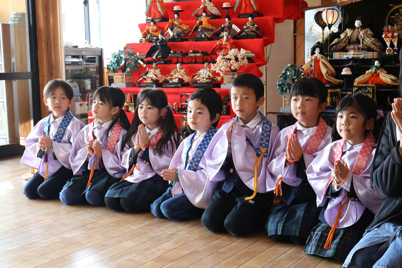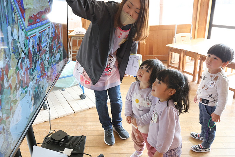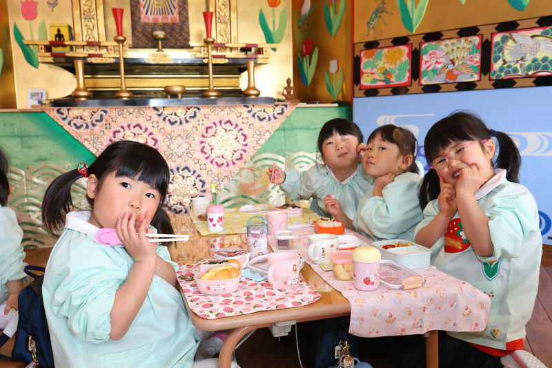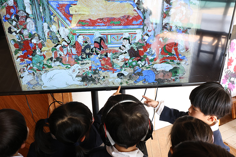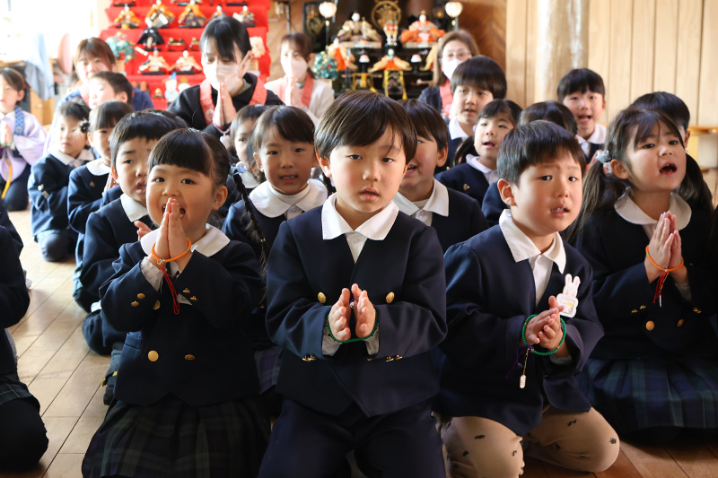 今日は、2月15日がお釈迦さまのお亡くなり(入滅)になられたとされることにちなんで涅槃会(ねはんえ)のおまいりをしました。いつものおつとめをしてから、お釈迦さまの伝記を分かりやすく紹介したスライドを見ています。それから5月の花まつり(降誕会)、12月のお悟りの日(成道会)のこともスライドで振り返りました。今日の涅槃会で、仏教の祖であるお釈迦さまの三大法会(ほうえ)を錦華幼稚園でも勤めたことになります。