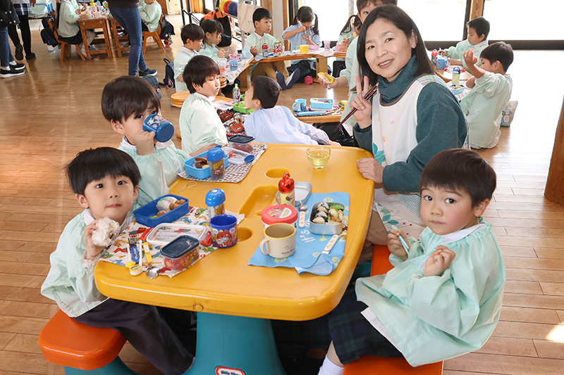 今日のお昼はなかよし弁当ლ(´ڡ`ლ) 。自由に部屋を選んで誰と食べてもいいのがなかよし弁当。誰もいない部屋もあればやっぱりホールは一番人気。それぞれの理由やこだわりで好きなように食べていたようです。
