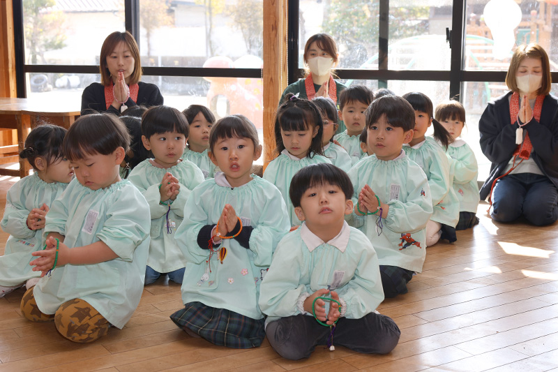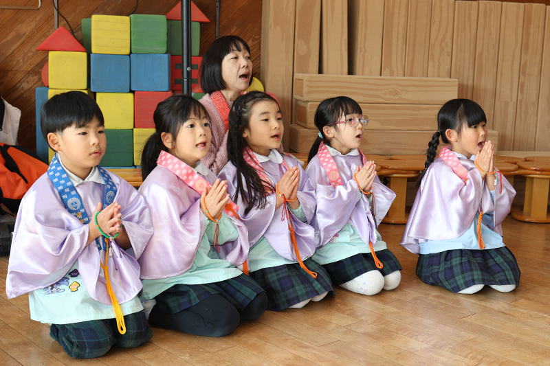 今日はおまいりの日でした。さくら組さんの開扉や献灯献華献香で始まるおまいりですが、今のさくら組さんがその務めを果たしてくれるのもあと数回・・・。すみれ組さんに「さくらさんのようにできるかなぁ?」と尋ねると、みんな自信満々に「できるよ!」と答えてくれました。頼もしい限りです。