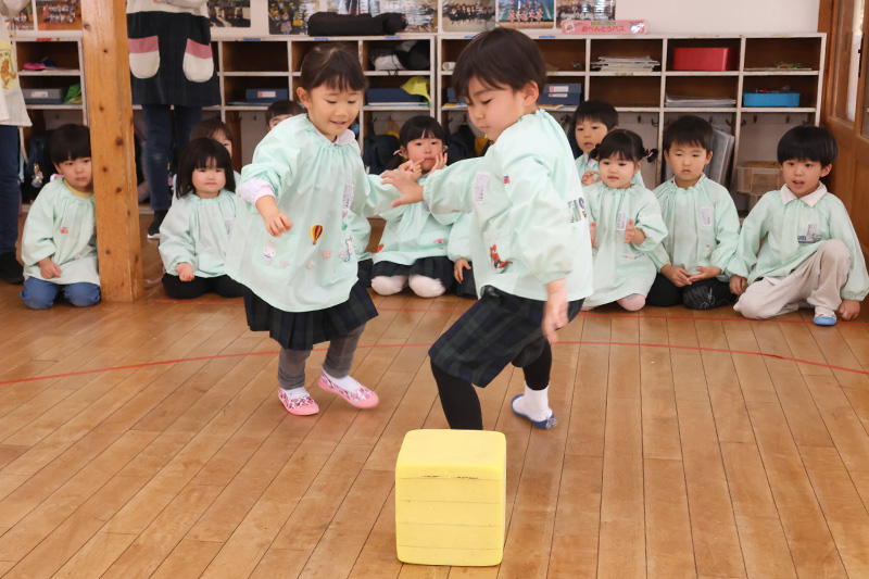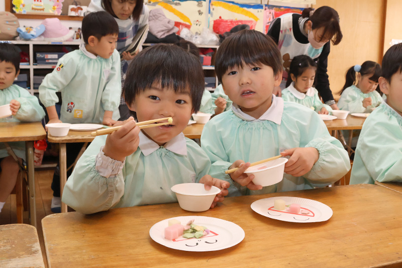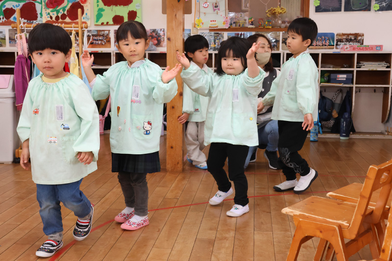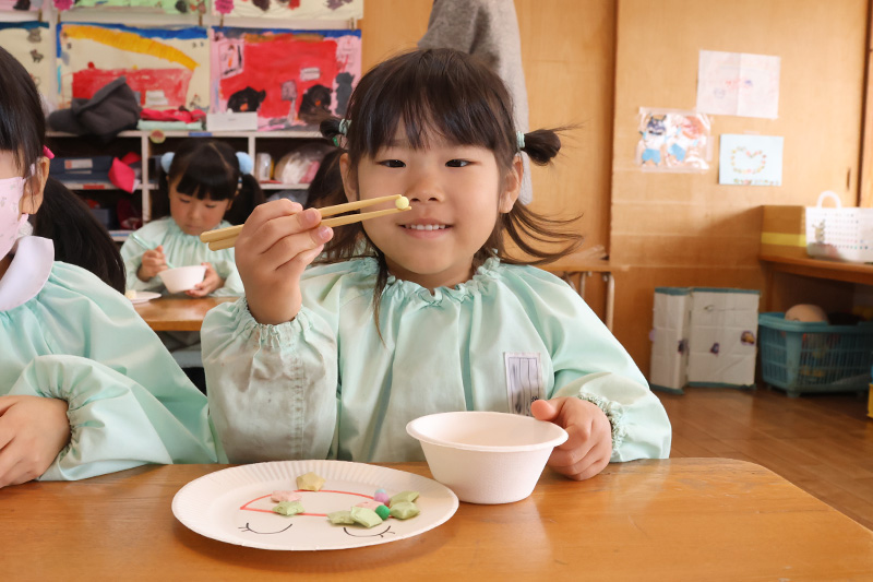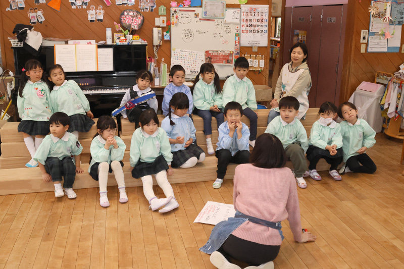 今日は食育指導の日。佐賀市から管理栄養士さんに来ていただきました。すみれ組は主にお箸の持ち方、使い方について。もも組とつぼみ組は合同で、エプロンシアターでの体の中の仕組みのお話とウンチについてのお話を聞きました。いずれも楽しく面白く、そしてわかりやすく伝えていただきました。ご家庭でも改めて親子で『食』について話し合ってみてはいかがでしょうか。
