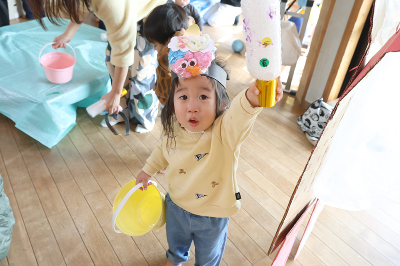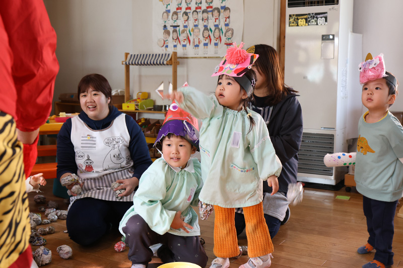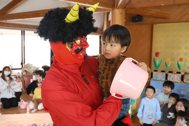 去年までちゅうりっぷの豆まきでは私が鬼役をやっていたのですが、今にして思えば鬼役を楽しむあまりにいたいけなおさなごを泣かしてしまっていました。今日は怖がらせようとしてもどこか優しさが滲み出るジェントルな赤鬼の振る舞いに多くのことを学ばせてもらいました(´∀`;)。次、鬼をやる機会があれば、ジェントルに泣かしたいと思いましたΨ(`∀´)Ψ ケケケ
