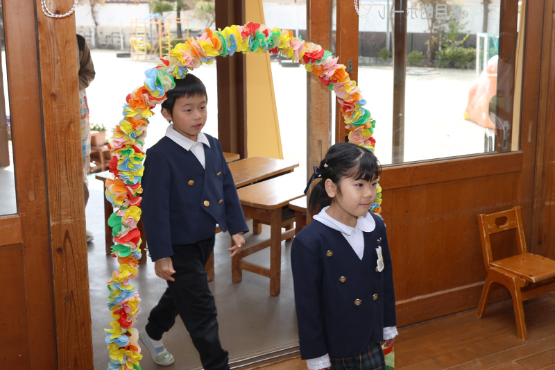 今日は卒園式の総練習。すみれ組・もも組・つぼみ組がホールに入ってお客さん(保護者役?)となってさくら組の卒園式の練習を見守ります。さくら組と先生だけで行っていた今までの練習と違って、ホールに入場すると拍手で迎えられます。見られてる!(´∀`;)という程よい緊張感の中でとても立派な姿を見せてくれたさくら組さんでしたよ。