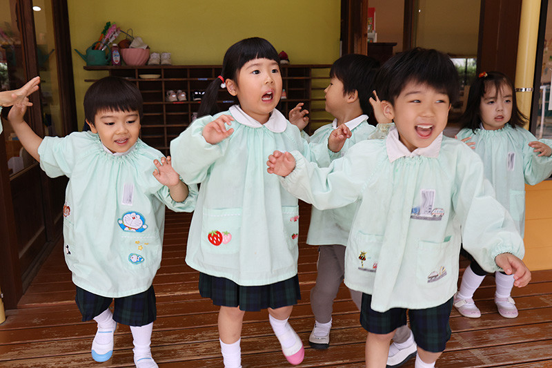 すみれ組やもも組は園内探検をしています。園舎内の隅々まで見て回って、いろんな部屋の場所や先生のことを伝えています。天気が良くなったら園外探検もしましょうね!