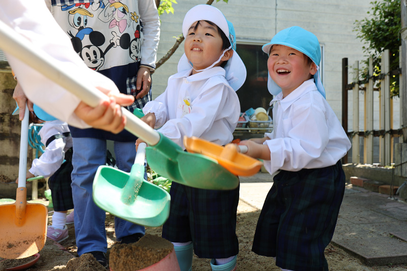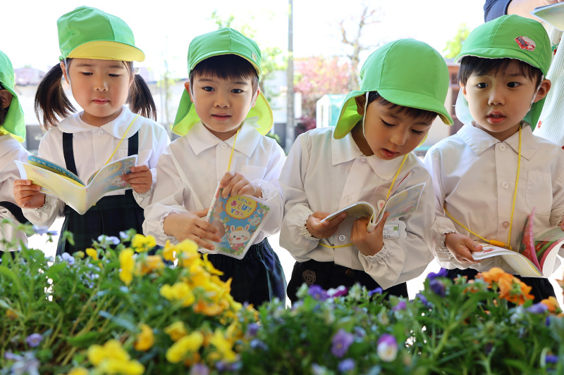 さてさて、土日明けの幼稚園・・・新入園児さんたちの登園の様子はどうかな?と、ついつい心配もしてしまいますが、それも杞憂。ほとんどの子たちが元気に保育室へと入っていく様子に感心させられました。