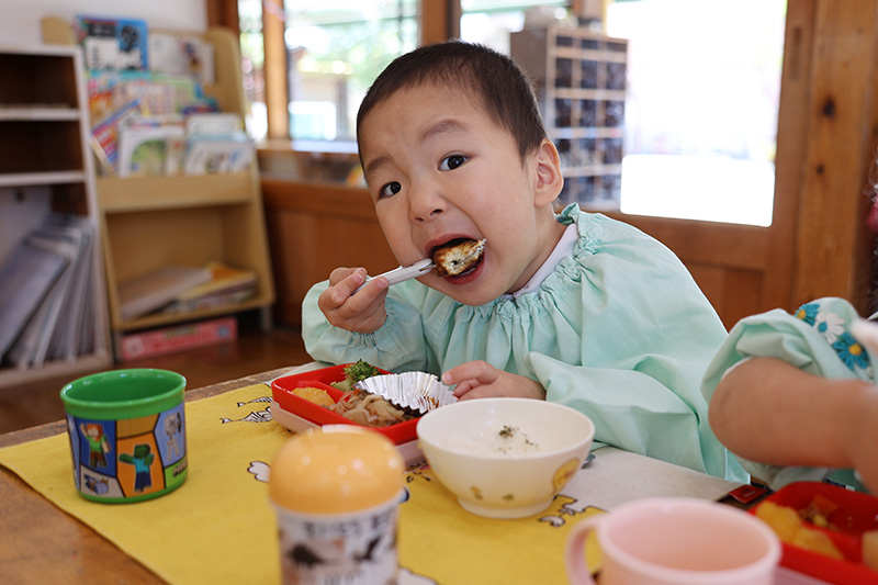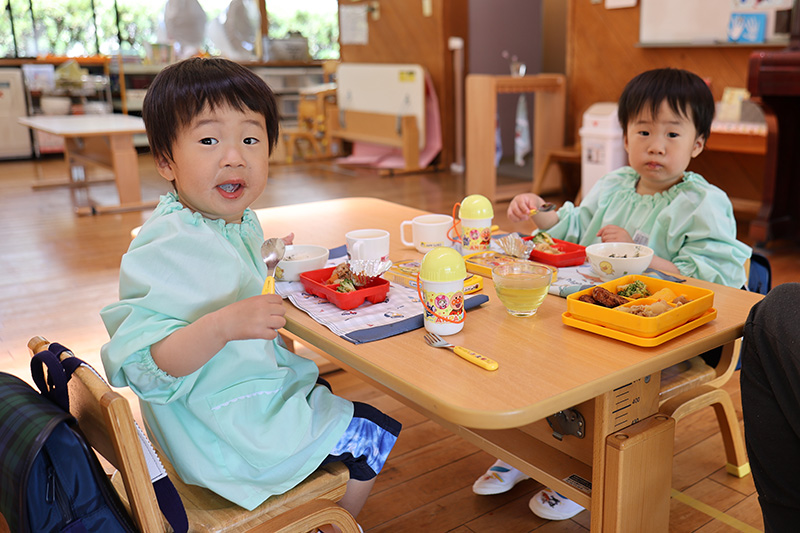 先週木曜の最初の給食は比較的食べやすいサンドイッチ給食。そして、金曜は手作り弁当でした。今日からの給食弁当がもしかしたら新入園児さんにとっては「ハードル高っ」(´∀`;)と感じる子もいるかもしれません。食べる量や速さ、好き嫌いなどは個人差が大きいところです。ぼちぼち様子を見ていきたいと思います。