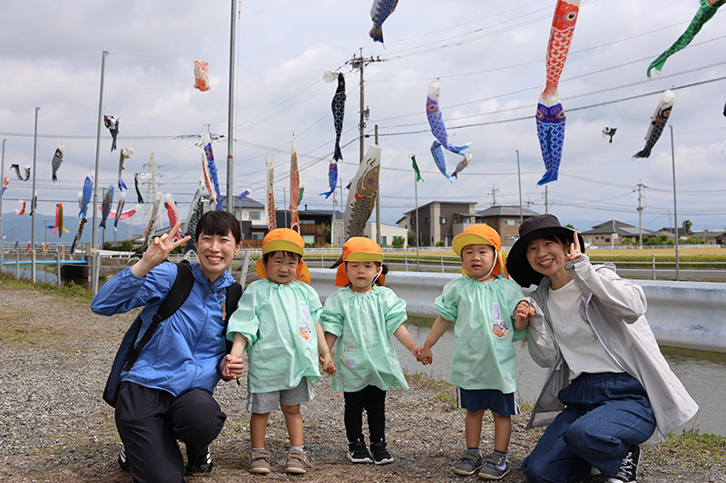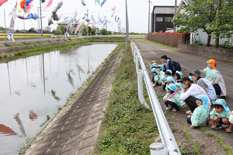 もも組とつぼみ組は鯉のぼり見物