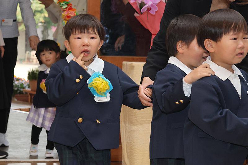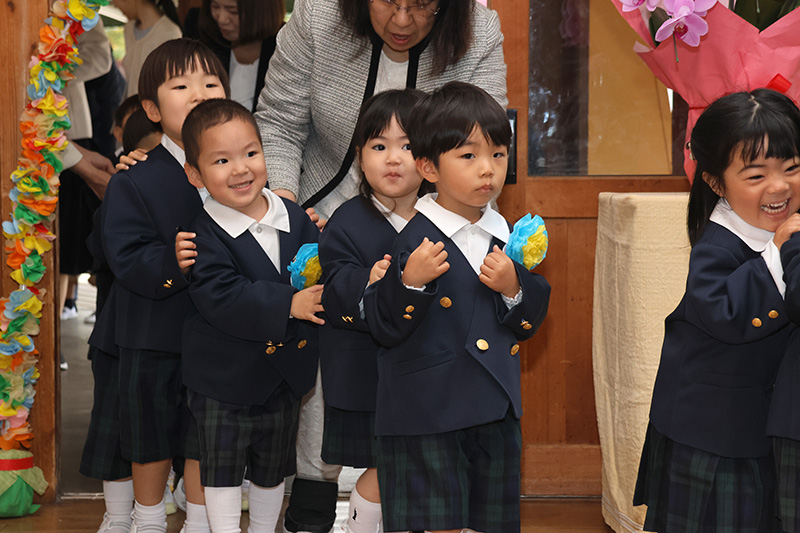 今日は入園式!あいにくの雨模様でしたが、ピッカピカの制服に身を包んで、新入園児18名(つぼみ組からの進級児含む)が元気にやってきてくれました。すみれ組1名、もも組14名、つぼみ組3名はそれぞれ保育室に入って名前札をお祝いの胸花をつけてもらいました。式直前になっておうちの人と一旦離れると、にわかに表情が曇る子や涙が出る子もいましたが、それも無理からぬこと。ホールへの入場では笑顔もあれば涙もあり・・・どちらも可愛い新入園児さんの連なる姿でした。さくら組さんの立派な献灯献華献香、園長の長すぎる話、保護者代表の有り難いお言葉、そして手遊びから寸劇とおかげさまで無事に入園式を閉じることができました。明日から新入園児・進級児揃っての錦華幼稚園がスタートします。教職員一同、ともに育ち合うことを楽しみにしておりました。どうぞよろしくお願いいたします。