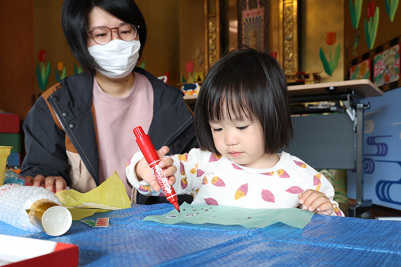 2月のちゅうりっぷは毎年恒例の“まめまき” 14組16名のちゅうりっぷのお友だちが集まってくれました。節分の日にまめまきをした家庭は少なく、初めて経験した子も多かったようです。まず初めにオニのお面と金棒作り。好きな色を選び、マジックで描いたりシールを貼ったりカラフルなオニのお面が出来上がりました。早速、新聞紙の“まめボール”を大きなオニの口に入れて豆まきの練習٩( ᐛ )و バケツの中身丸ごと食べせさせている子がいたり、「おにはそと!」と元気な声も聞こえていました😃